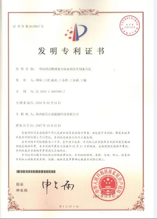 高清洁燃油产品获国家发明专利