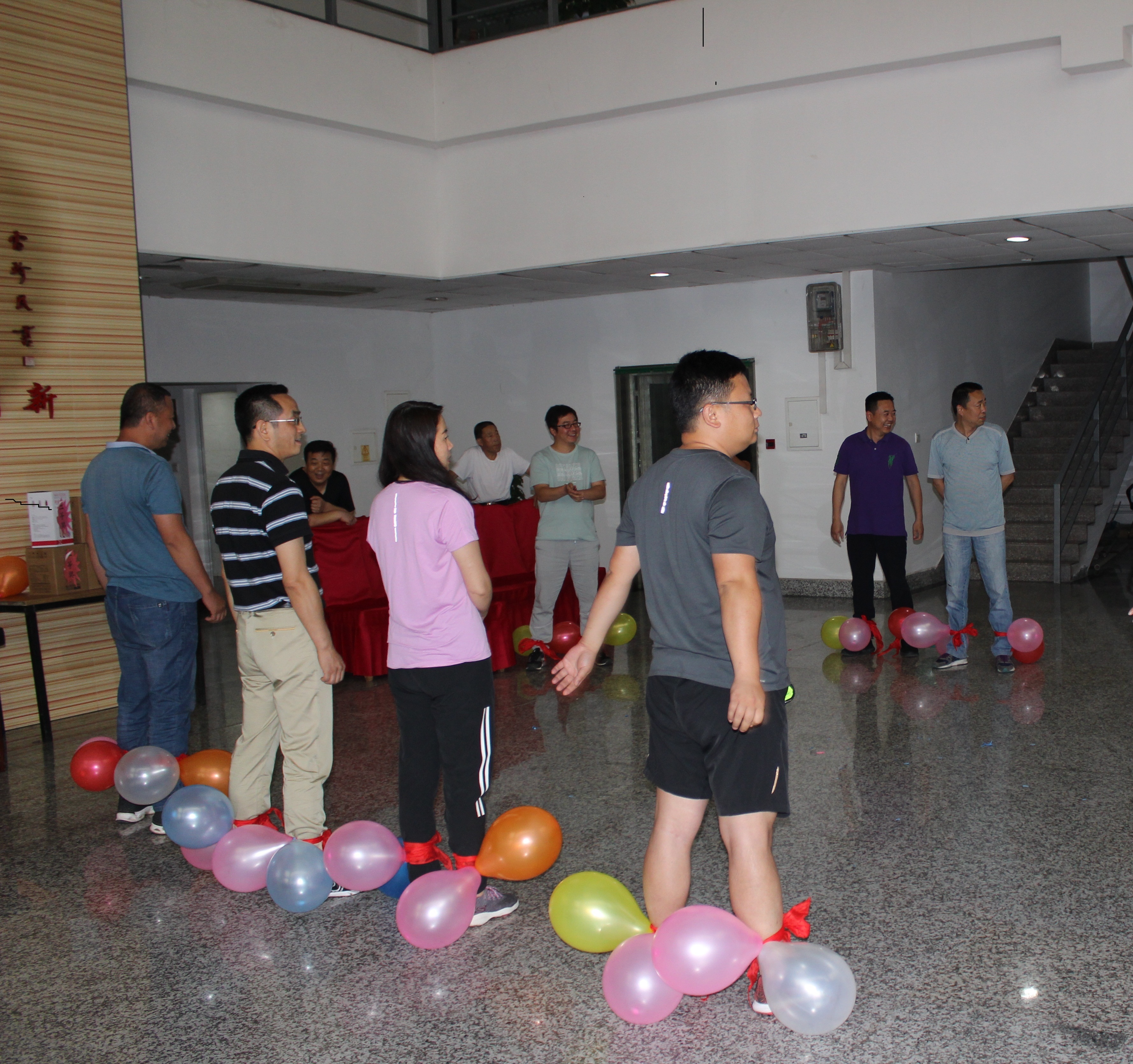 本次活动以“挥洒阳光,凝聚合力,共逐梦想”为主题。活动开始,组织进行了抢凳子、踩气球两项集体热身游戏活动。全体人员分组参与了活动,在明快、激昂的乐曲声中,各组人员热情高涨积极投入,活动气氛异常活跃,起到了热身效果。